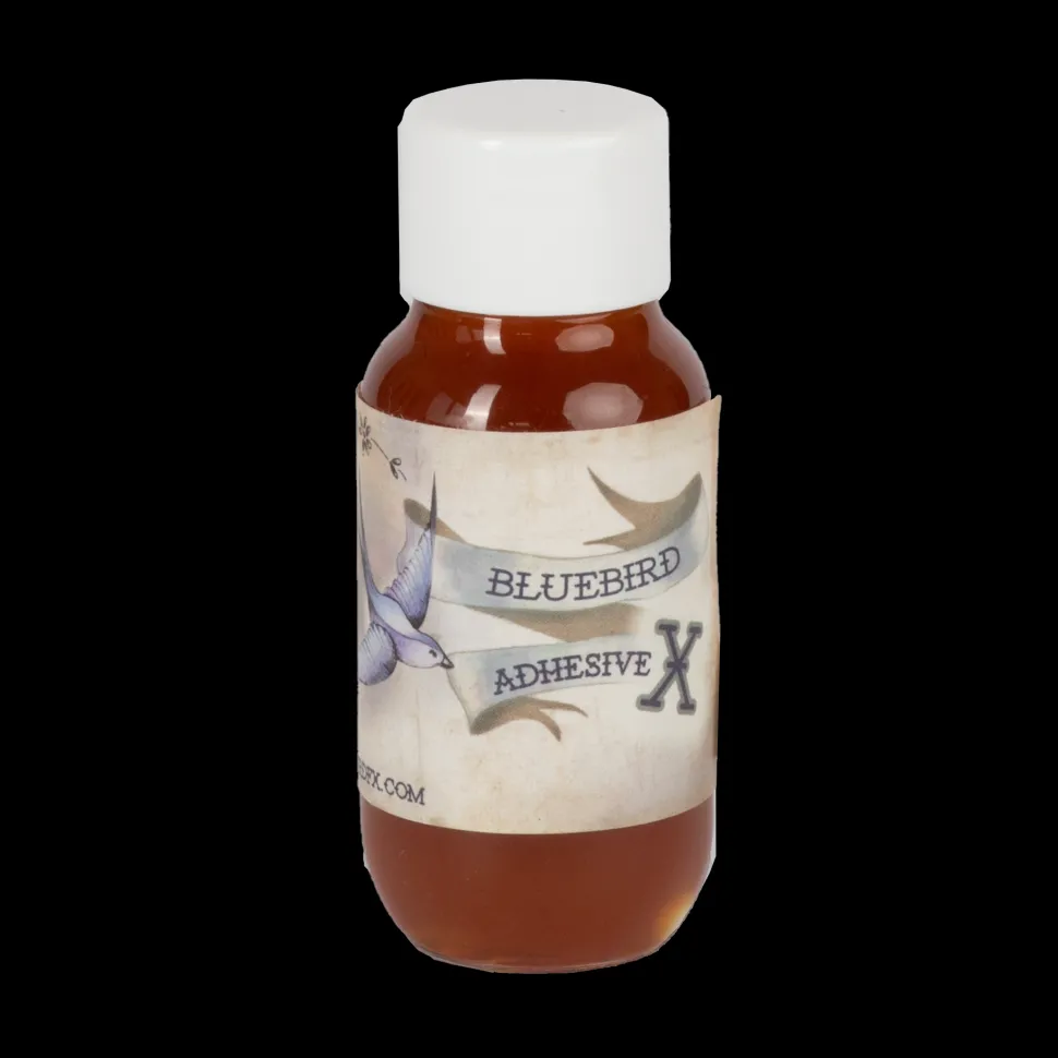 bluebird fx Adhesive X ist ein gelierter Kleber für den direkten Auftrag auf der Haut. Kleber kurz anziehen lassen bis er Fäden zieht und dann das zu klebende Haar-Teil anbringen. Durch die Festigkeit des Klebers eignet er sich auch besonders für das Kleben von Bart-Aus-Der-Hand. Für mehr Mattigkeit und Festigkeit anklopfen. Trocknet zu einem perfekten matten Finish aus. Ideal am Set.
