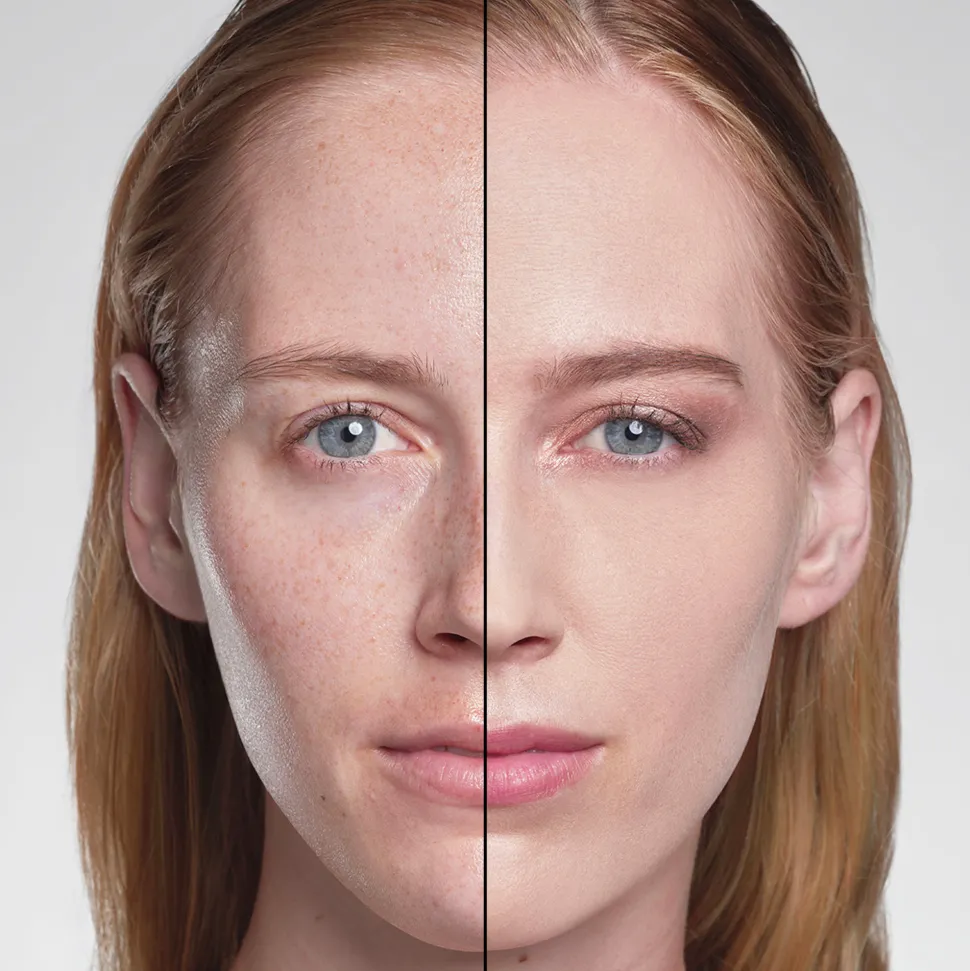 SYNCHRONISIERT SICH MIT DER HAUT UND SORGT FÜR EINEN MAKELLOSEN TEINT UND EIN EBENMÄSSIGES, MATTES FINISH, DAS 24 STUNDEN LANG HÄLT UND SICHEREN KOMFORT BIETET.