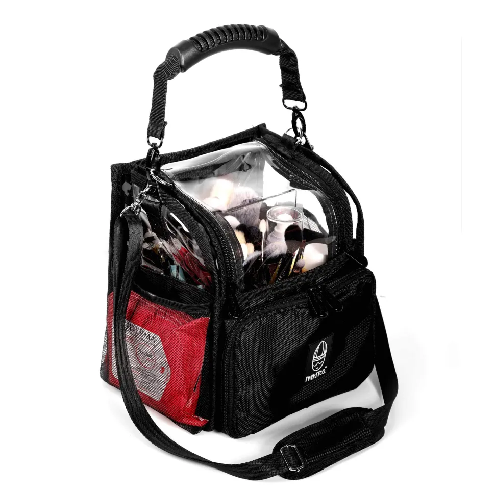 Auswechselbare Griffe ermöglichen es Ihnen, die Tasche, die vollständig mit PVC ausgekleidet ist, in der Hand oder über die Schulter zu tragen, so dass sie eine saubere und hygienische Ergänzung Ihres Make-up-Kits darstellt.