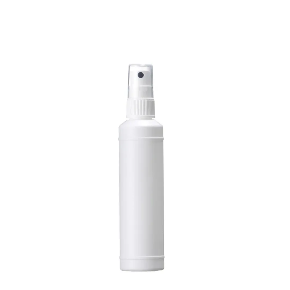 Runde Sprühflasche mit 100 ml Volumen aus PE-HD, natur, mit Pumpzerstäuber