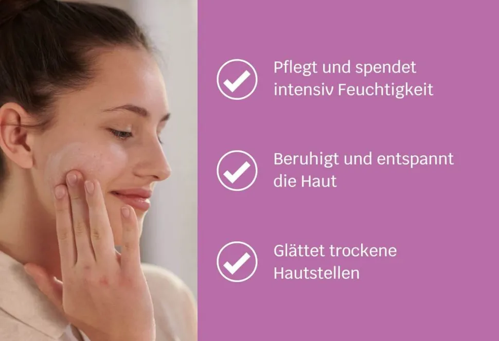 Hautberuhigende, höchstverträgliche Pflege für empfindliche, feuchtigkeitsarme Mischhaut. Auch für die besonderen Pflegeanforderungen z. B. bei Rosazea / Couperose.